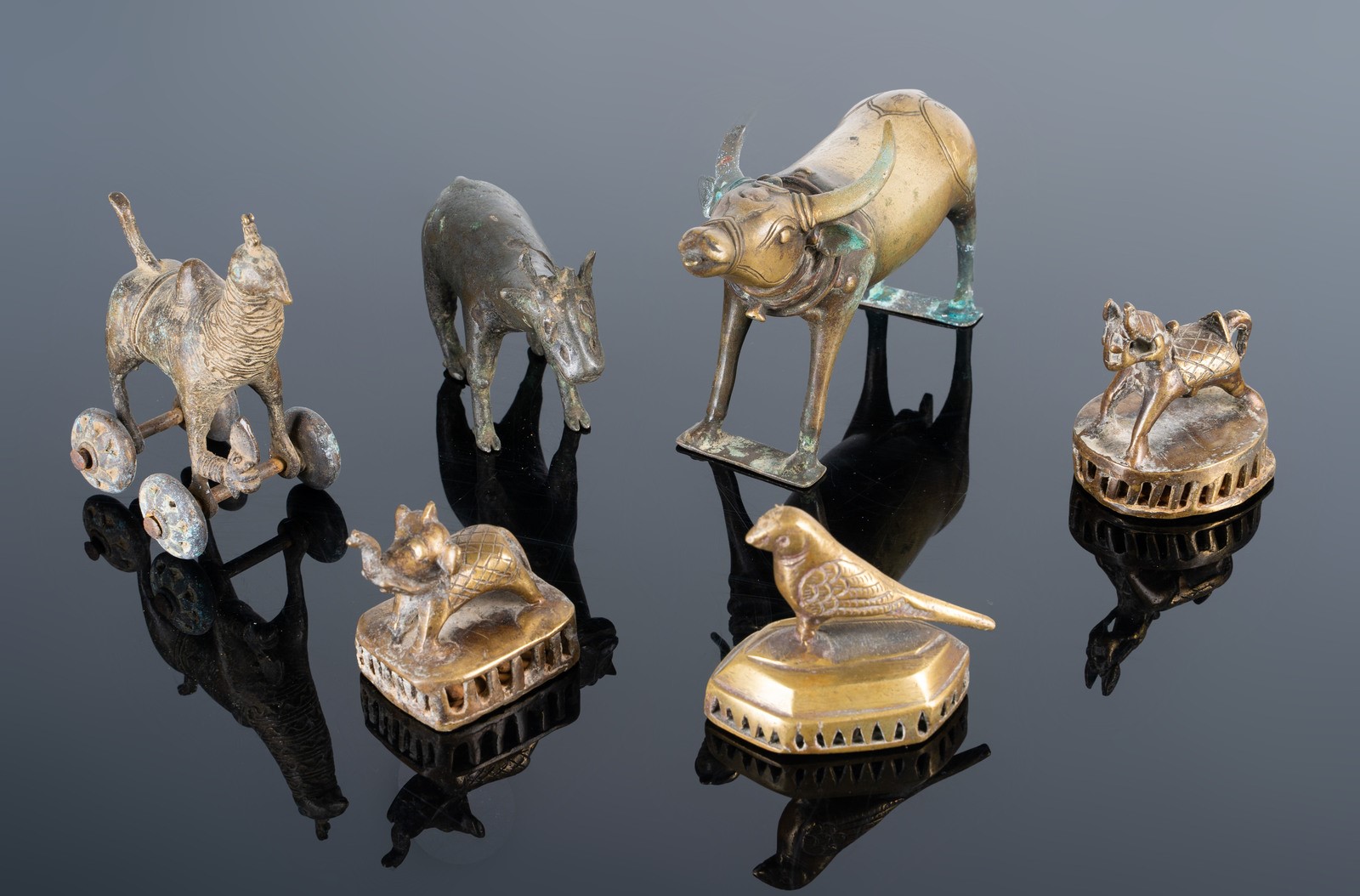 Arte Indiana A collection of six bronze zoomorphic carpet weights India, 19th century .