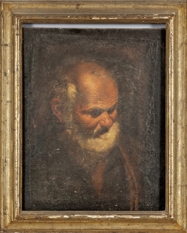 Scuola genovese sec.XVII 'Ritratto di vecchio con barba' olio cornice coeva a sagoma romana