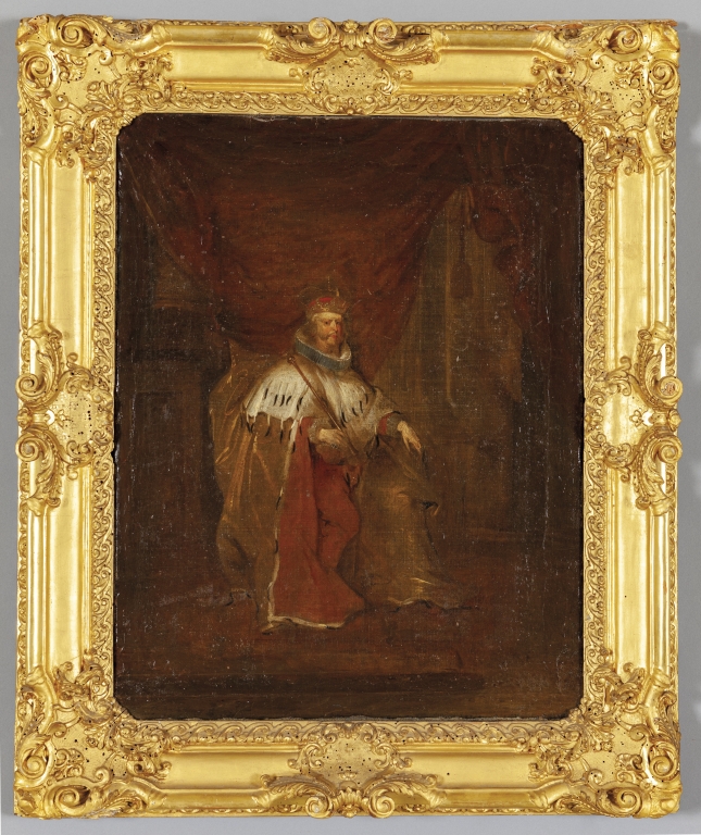 Scuola genovese sec.XVII 'Ritratto di doge con manto in ermellino' olio cornice coeva in legno intagliato e dorato