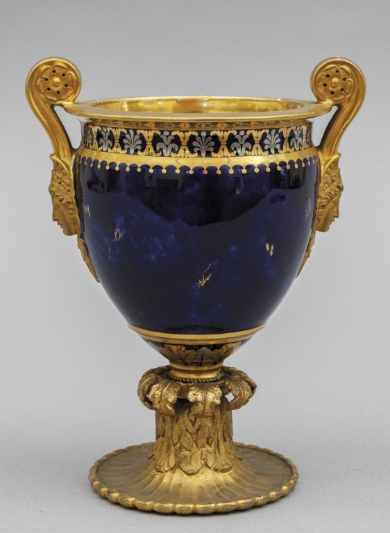 Vasetto in porcellana blu con base in bronzo dorato Francia sec.XIX