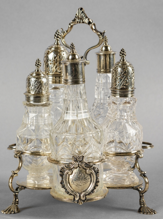 Previous Lot 86 Next Aste Boetto - Via Mura dello Zerbino 10R, 16122 Genova Antiquariato, Pittura del sec.XIX e Arte Orientale Prima sessione Tuesday 24 September 2019 hours 15:30 (UTC +01:00) OGGETTISTICA Set da tavolo in argento e cristallo Inghilterra sec.XIX