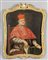 Scuola genovese sec.XVII 'Ritratto di cardinale' olio di forma sagomata bella cornice in legno intagliato con pellacce e dorato