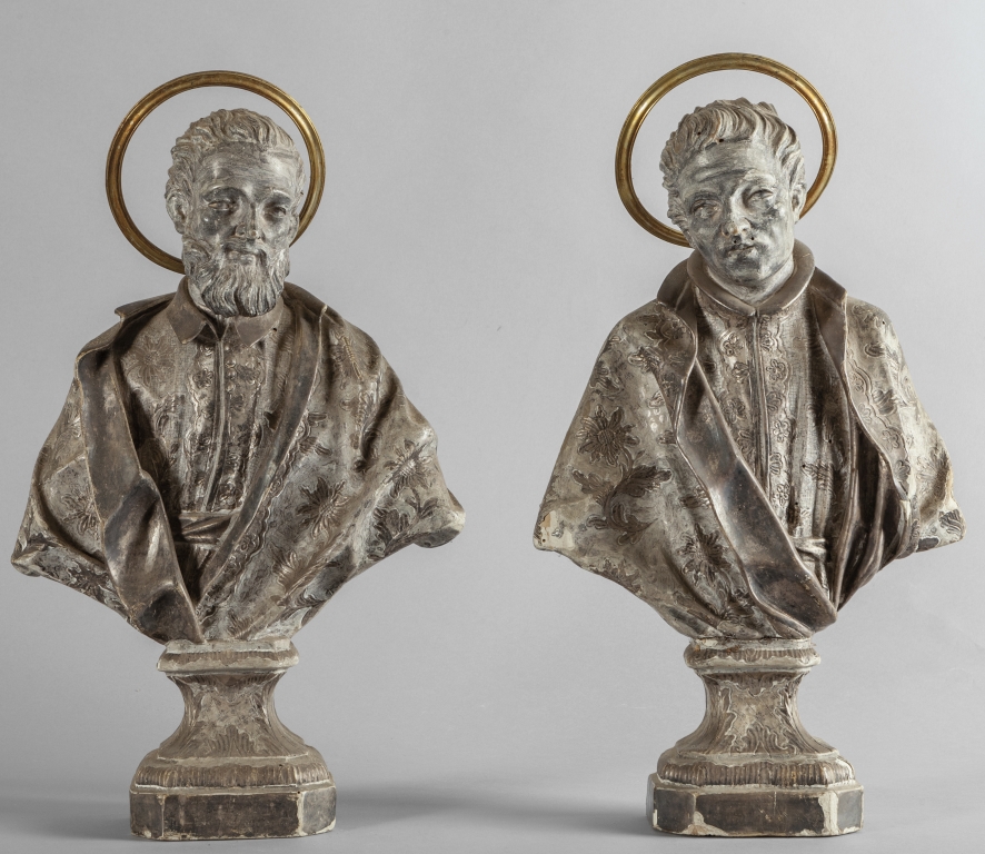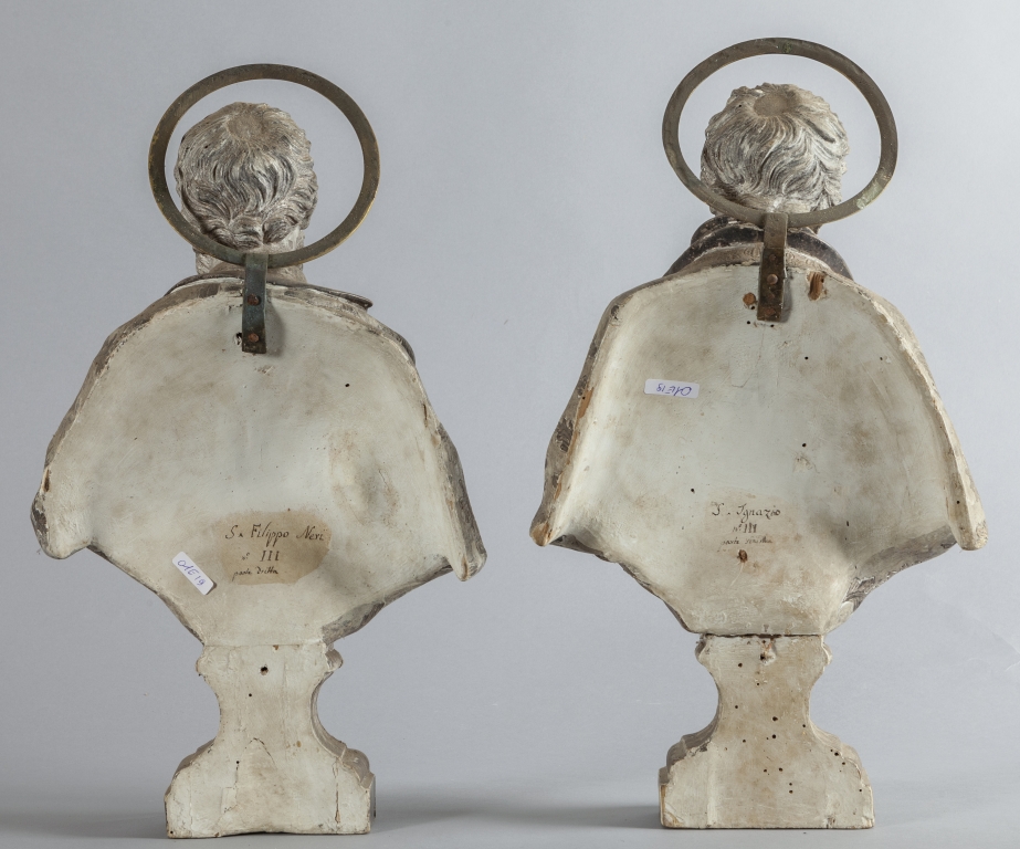 San Filippo Neri e Sant'Ignazio coppia di busti in legno finemente intagliato ed argentato a mecca Genova sec.XVIII