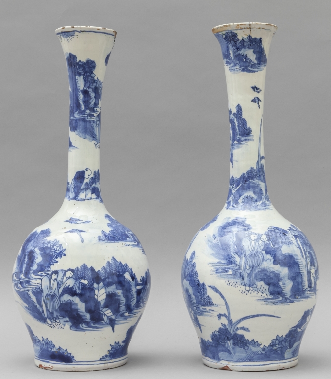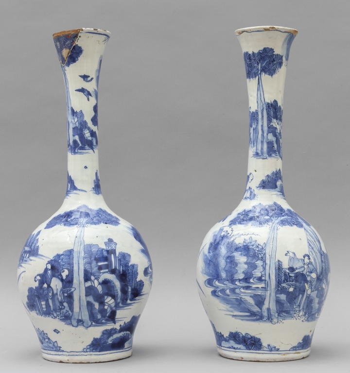 Coppia di vasi in ceramica decorati a cineserie in blu su fondo bianco Delft sec.XVIII
