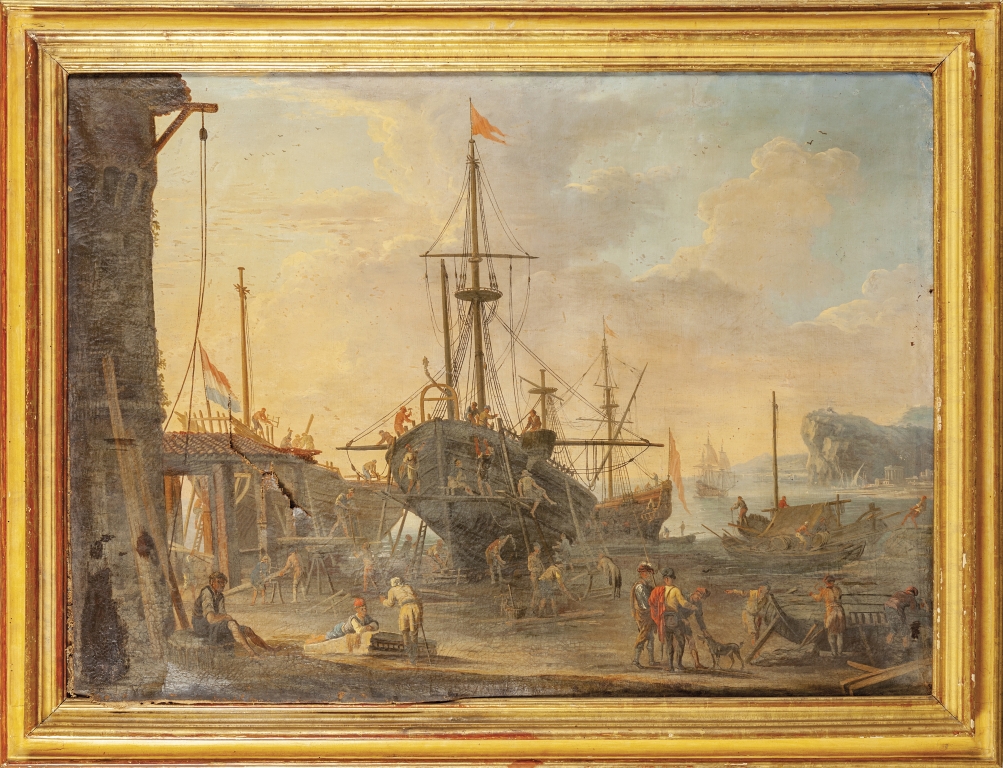 Scuola veneta sec.XVIII 'Veduta di porto' olio