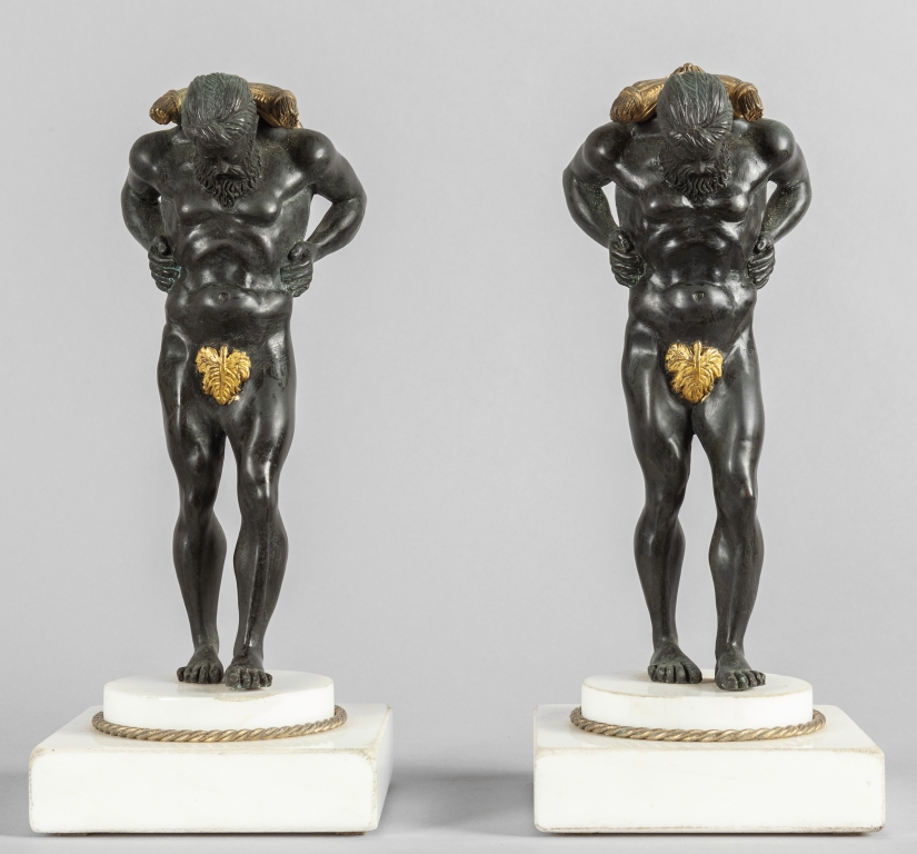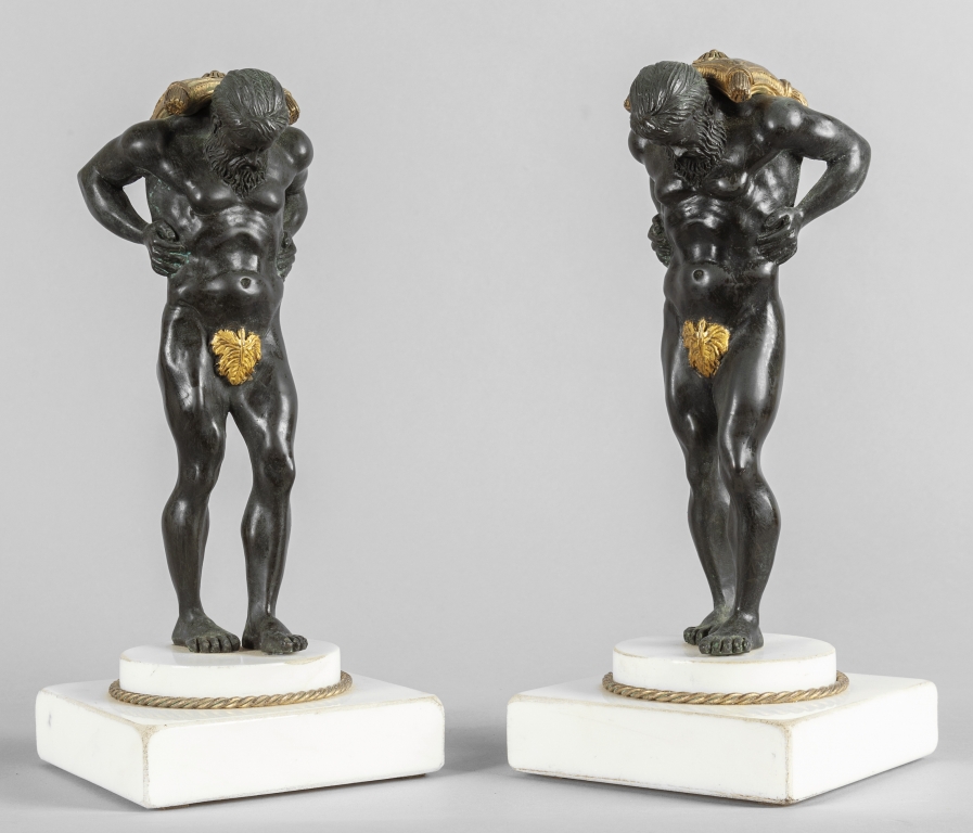 Due sculture in bronzo raffiguranti Ercole basi in marmo
