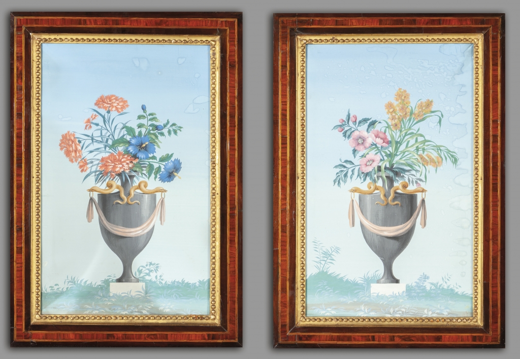 'Vasi di fiori' coppia di tempere cornici coeve lastronate
