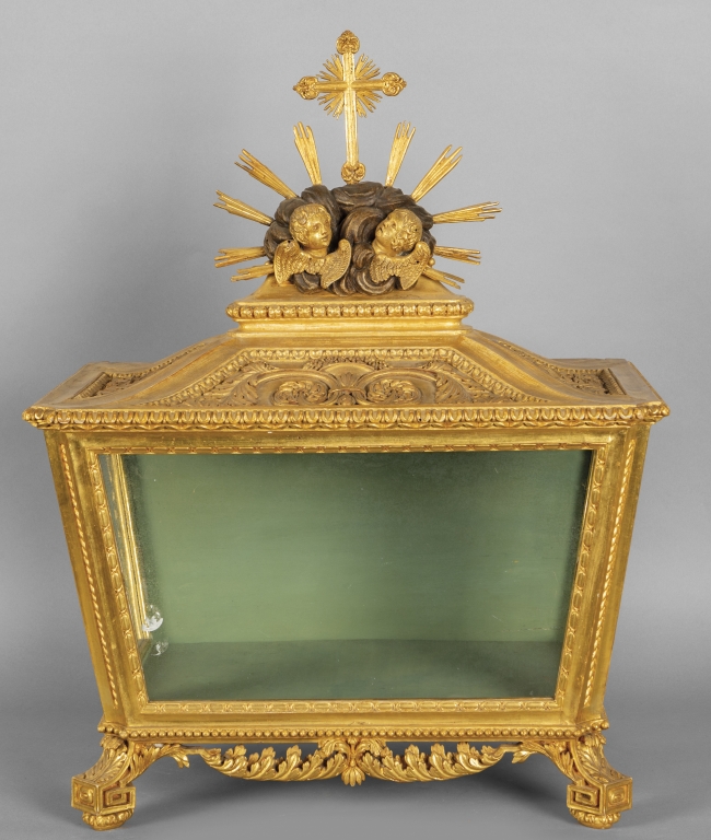 Teca Carlo X in legno finemente intagliato e dorato inizi sec.XIX