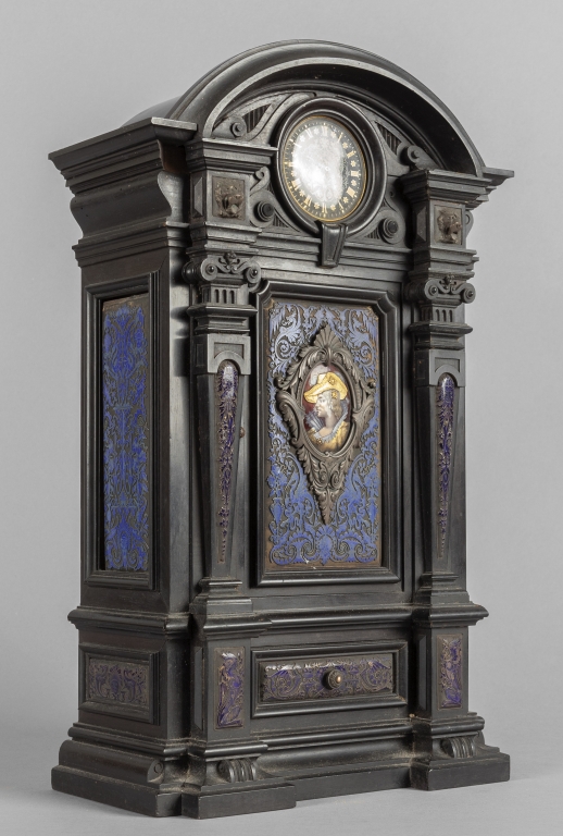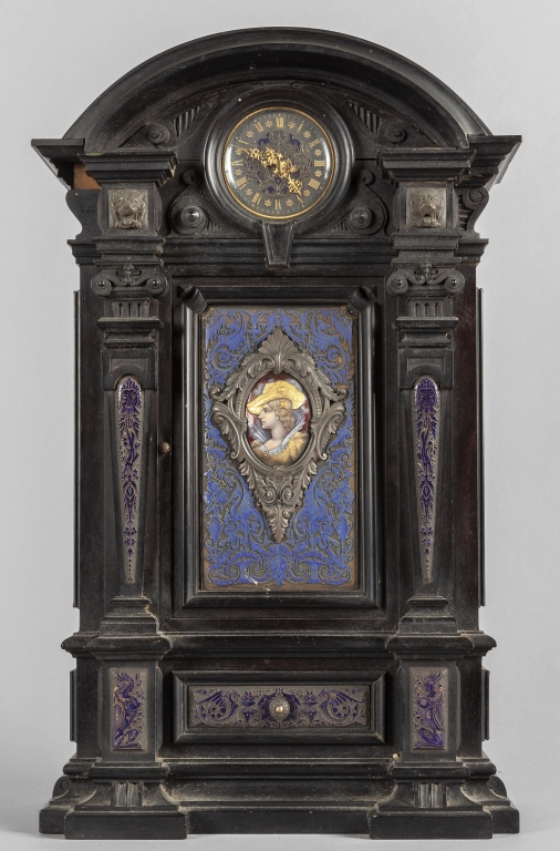 Orologio umbertino in legno e smalti sec.XIX