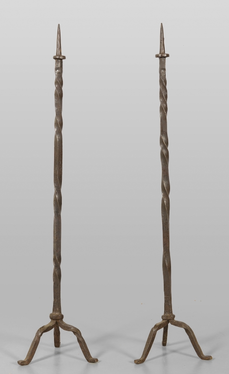 Coppia di candelieri in ferro tornito inizi sec.XVIII
