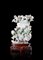 Vaso in giadeite con venature verde mela scolpito con rami in fiore, base in legno