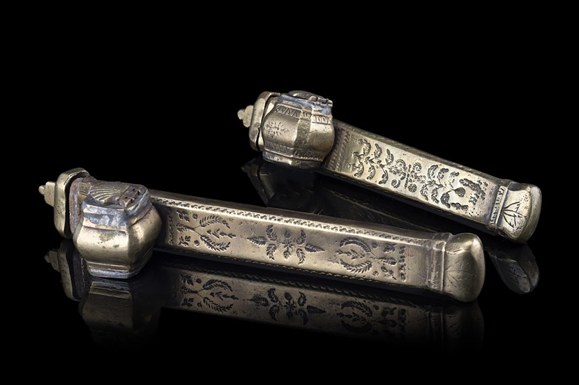 Lot 1018 | Manifattura indiana Due calamai in bronzo (l. max 25 cm.) -EN Indian...