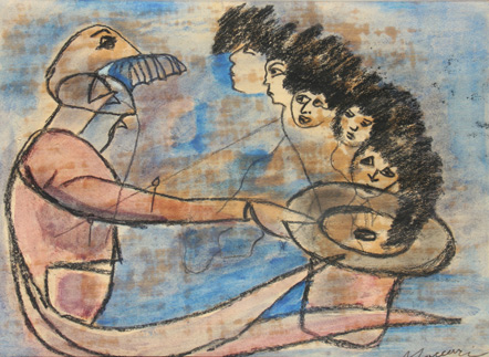 MACCARI Mino Siena 1898 - Roma 1989 Senza titolo tecnica mista su carta applicata su tela, cm. 33.5 x 44 Firma 'Maccari' (in basso a destra) Autentica dell'artista su fotografia