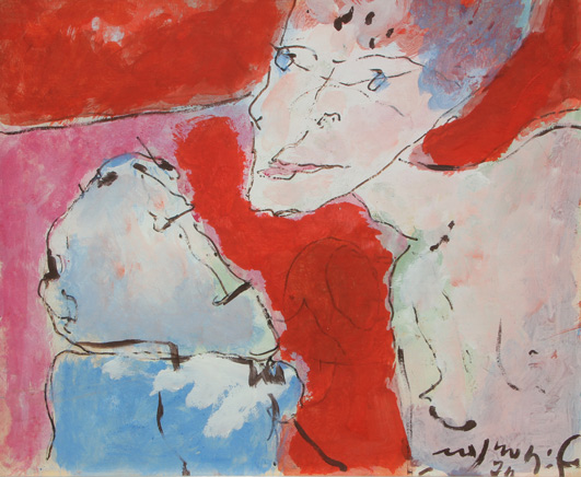 ROGNONI Franco Milano 1913 - Milano 1999 Colloquio, 1976 olio e tempera su tela, cm. 49 x 57.5 Firma, data 'Rognoni F, 76' (in basso a destra) Autentica dell'artista su fotografia