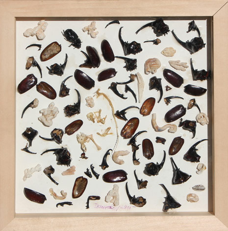 SPOERRI Daniel Galati 1930 Senza titolo tecnica mista su tavola, cm. 32 x 30 Firma 'Daniel Spoerri' (in basso al centro) Firma 'Daniel Spoerri' (al retro) Fotografia dell'artista con l'opera, con timbro del Centro d'Arte Il Caravaggio, Villa Literno Provenienza: direttamente dall'artista