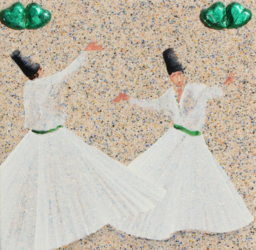 MONDINO Aldo Torino 1938 - Torino 2005 Dervisci, 2003 olio su linoleum, cm. 40 x 40 Firma, data 'Mondino, 2003' (al retro) Autentica dell'artista su fotografia