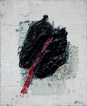 BORGHI Alfonso Campegine di Reggio Emilia 1944 En el blanco infinito, i que pura y larga herida dejò su fantasia, 2002 olio su tela, cm. 80 x 60 Firma 'A. Borghi' (in basso a destra) Titolo, tecnica, misure, data, firma 'En el blanco infinito, i que pura y larga herida dejò su fantasia (F. G. Lorca), olio su tela, 80x60 cm, 02, A. Borghi' (al retro) Autentica dell'artista su fotografia