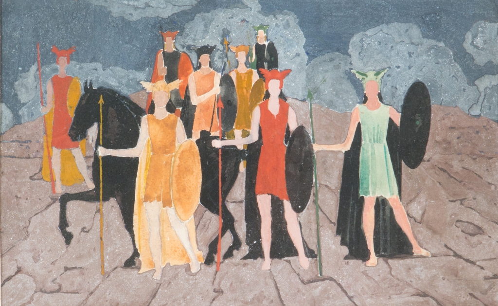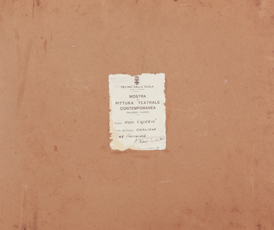 on the reverse: label of Mostra di Pittura teatrale contemporanea Palazzo Clerici Milan (14/6/1944)
