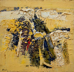 BORGHI Alfonso Campegine di Reggio Emilia 1944 Oliveres sonolientos basan al liano caliente, pastor que vas como una sombra de oro en el trigal te disuelves, 2002 olio su tela, cm. 100 x 100 Firma 'A. Borghi' (in basso a sinistra) Titolo, firma 'Oliveres sonolientos basan al liano caliente, pastor que vas como una sombra de oro en el trigal te disuelves (F. G. Lorca), A. Borghi' (al retro) Autentica dell'artista su fotografia