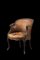 Poltrona a pozzetto in rovere con profili intagliati a palmette, braccioli mossi, fasce e gambe sagomate incise a unghiature e intagliate all'attacco a foglie. Tracce di stampigliatura. Francia, fine secolo XVIII (difetti e restauri)