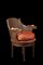 Poltrona da barbiere con schienale incannucciato e seduta girevole rivestita in cuoio. Braccioli terminanti a ricciolo, gambe rastremate. Stampigliata P. Bernard. Francia, secolo XVIII (difetti e restauri)