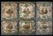 Gruppo di tre pannelli in legno laccato e dipinto su un lato a figure classiche