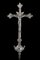 Crocefisso in argento con puntali e base decorati a teste di cherubini sbalzate a tutto tondo. Marchi non decifrati (h. cm 100) (difetti)