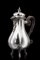 Caffettiera in argento con corpo piriforme costolato poggiante su tre piedi caprini con attaccature a volute. Beccuccio a volute fogliate, campanule e conchiglia. Presa a guisa di fiore a tutto tondo e ansa a volute in legno. Incisa sul corpo con stemma arcivescovile. Stato Pontificio, Roma, 1741 - 1787. Argentiere Vincenzo Belli (h. cm 28) (g 890 ca.) (lievi difetti)