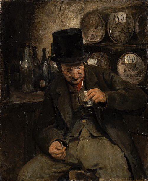 "Ritratto di Eduardo De Filippo nei panni di Edoardo Ferravilla che interpreta il Tecoppa" olio su compensato (cm 85x70) Firmato e dedicato "A Eduardo De Filippo l'ombra di un altro grande Edoardo offro cordiale amicizia e viva ammirazione. Roma 1948. Siviero" in alto a destra. Firma apocrifa in alto a sinistra. In cornice (difetti)
