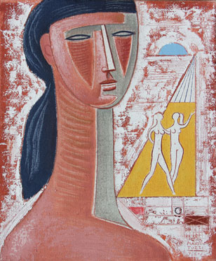TOZZI Mario Fossombrone (Ps) 1895 - Saint Jean du Gard 1979 L'amicizia, 1968 olio su tela, cm. 55 x 46 Firma, data 'Mario Tozzi, 968' (in basso a destra) Timbro della Galleria Cavour, Forte dei Marmi (al retro) Autentica dell'artista su fotografia in data Parigi, 08/12/1978 con timbro dell'Archivio Mario Tozzi Bibliografia: M.Pasquali, 'Mario Tozzi - Catalogo ragionato generale dei dipinti', tomo II, Ed. Giorgio Mondadori & Ass., p.209, ill. 68/116