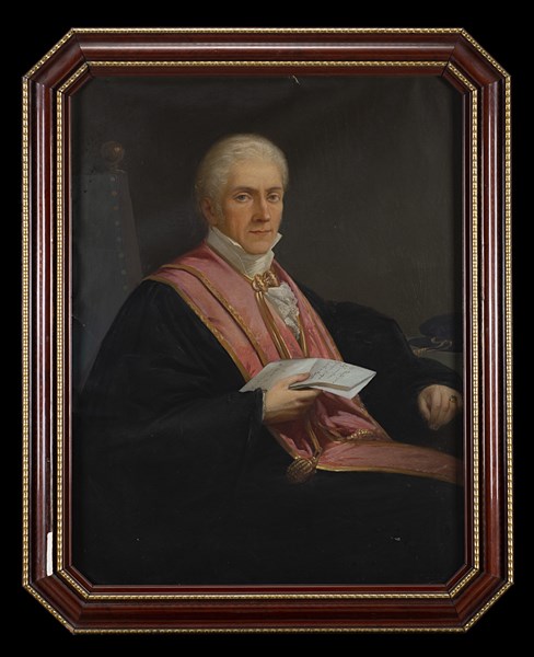 "Ritratto" olio su tela (cm 99x75) Firmato in basso a destra ed iscritto sul cartiglio "All'illustrissimo signor consigliere Giuseppe Cugini podestà di Reggio" In cornice ottagonale (difetti e mancanze)