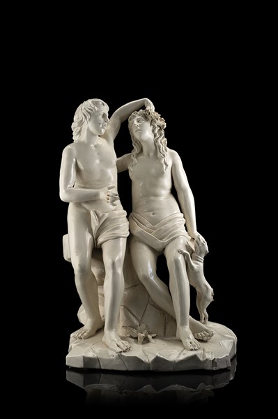 A earthenware group depicting Zephyr and Flora. Veneto, 18th century (h. cm 38) (losses and restorations)