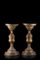 Coppia di portaceri in rame sbalzato, dorato e decorato a motivo concatenato. V