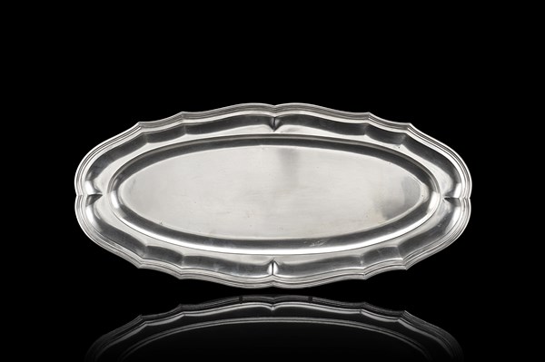 A silver tray. Titled 800 (cm 62) (g 1600 ca.)