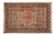 Decoro con medaglioni concentrici nei toni del rosa, verde acqua, ciclamino su fondo bianco bordato di rosa. Bordura principale a meandro con rami fioriti su fondo blu notte (cm 204x133) (lievi difetti)