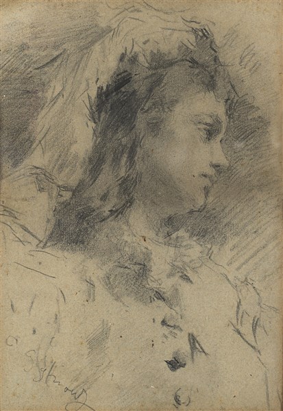Eugenio Gignous Ritratto femminile Carboncino su carta mm 200x140 circa Firmato