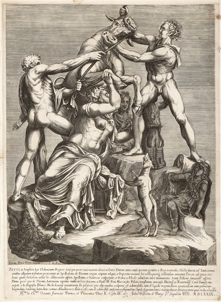 Cesare Roberti Zeto e Anfione attaccano Dirce ad un toro infuriato Bulino mm 492