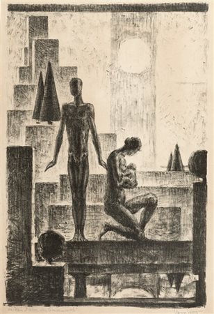 Jeno Krón Figure, dal ciclo dell'Uomo del Sole Litografia cm 46,5x32,5 circa Fir