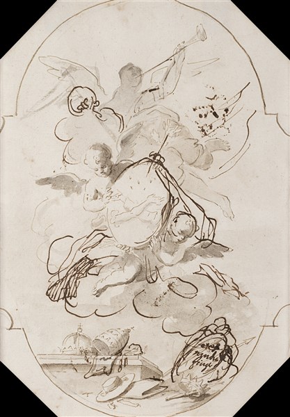 Artista del secolo XVIII Soggetto allegorico, studio per un affresco Penna e i