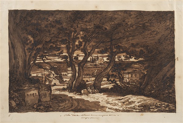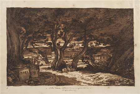 Felice Giani Veduta di Villa Doria ad Albano Laziale Penna e inchiostro bruno ac