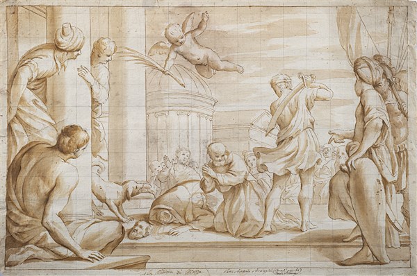 The work is probably the preparatory drawing for a work in the destroyed church of the Madonna di Piazza, Piacenza