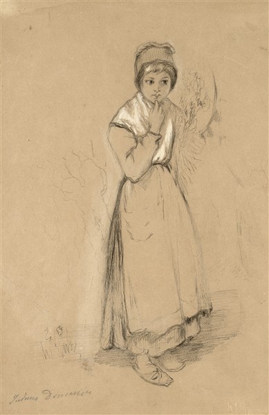 Artista del secolo XIX Bambina con cuffietta Matita nera e gessetto bianco su