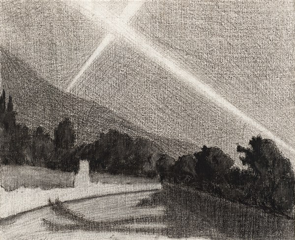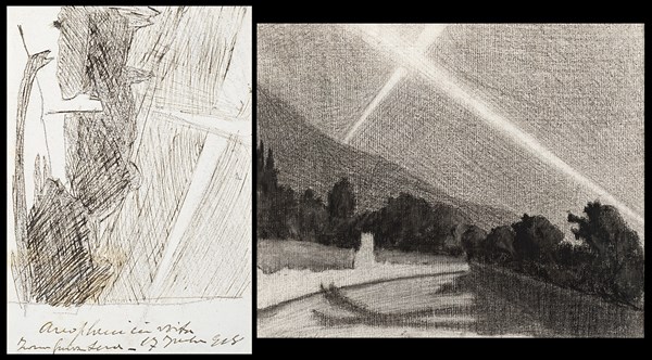 Giovanni Malesci I riflettori di guerra, primo schizzo Penna e inchiostro nero s