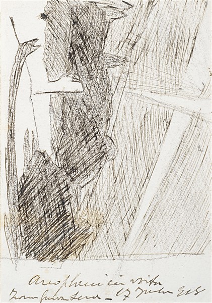 Iscritto in basso "Aereoplani in vista / ...sera...17...918"