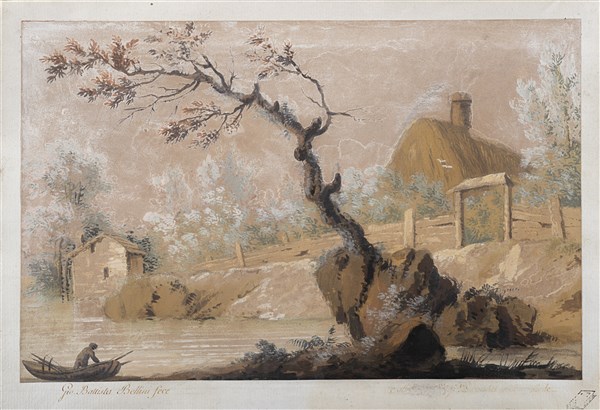 Scuola veneta del secolo XVIII Paesaggio con corso d'acqua Pastelli su carta i