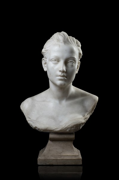 19th-century sculptor "Young lady" white marble half bust (h. cm 56) (defects and restorations)