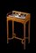 Tavolo porta necessaire lastronato e filettato in legni vari con antina a sarac