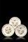 Manifattura di Felice Clerici, Milano, 1745/70. Tre piatti tondi in maiolica con decoro in monocromia oro su smalto bianco. Doratura lavorata graficamente con una punta a sgraffio a fiori su rami di derivazione orientale. Sul retro recano la scritta Milano in rosso (d. cm 23 circa) (usure all'oro e puntinature allo smalto)