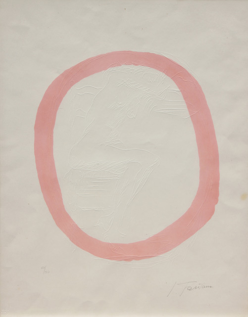 FONTANA Lucio Rosario Santa Fè 1899 - Varese 1968 Nudo rosa, 1967 incisione e serigrafia, cm. 62 x 46 Edizione di 170 esemplari + 15 pa. Firma 'L. Fontana' (in basso a destra) Bibliografia: H. Ruhè, C. Rigo 'Lucio Fontana incisioni, grafica, multipli, pubblicazioni...', Reverdito Edizioni, 2007, p. 60