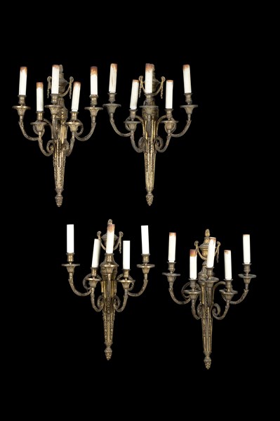Lot 773 | Gruppo di quattro appliques a cinque braccia con corpi scanalati e portacandele